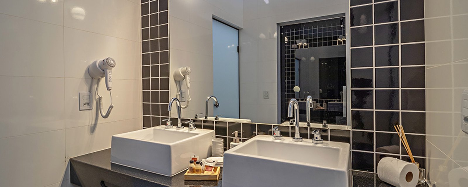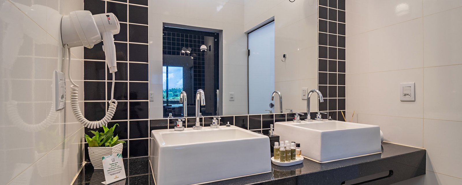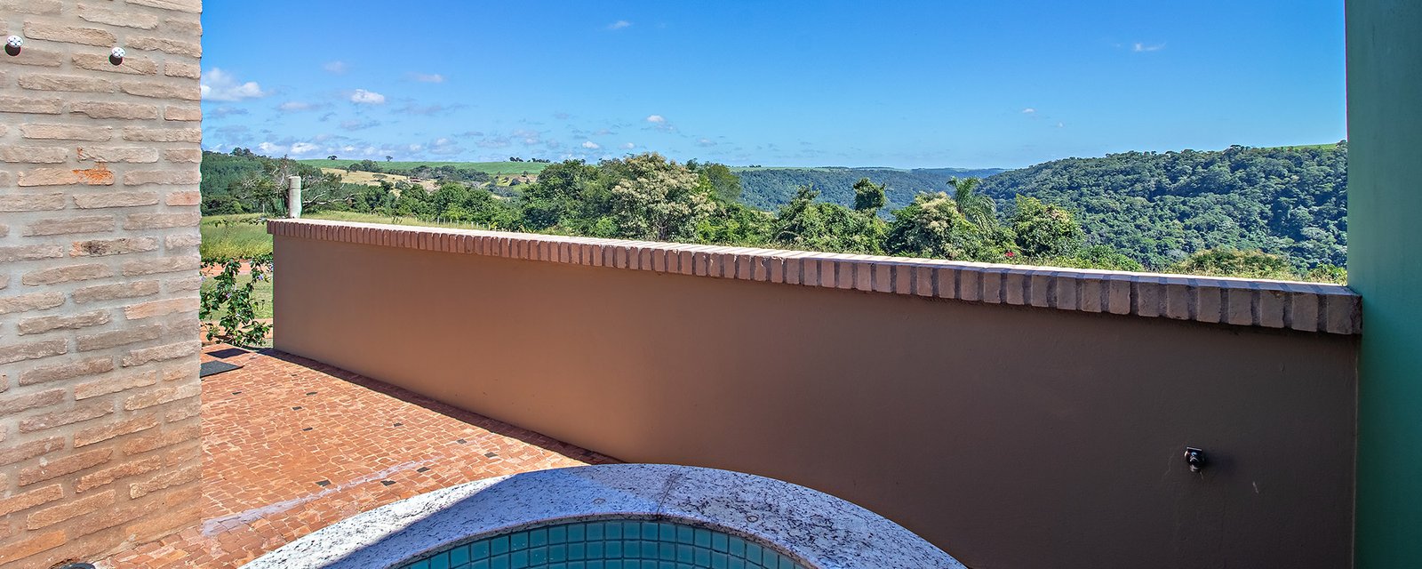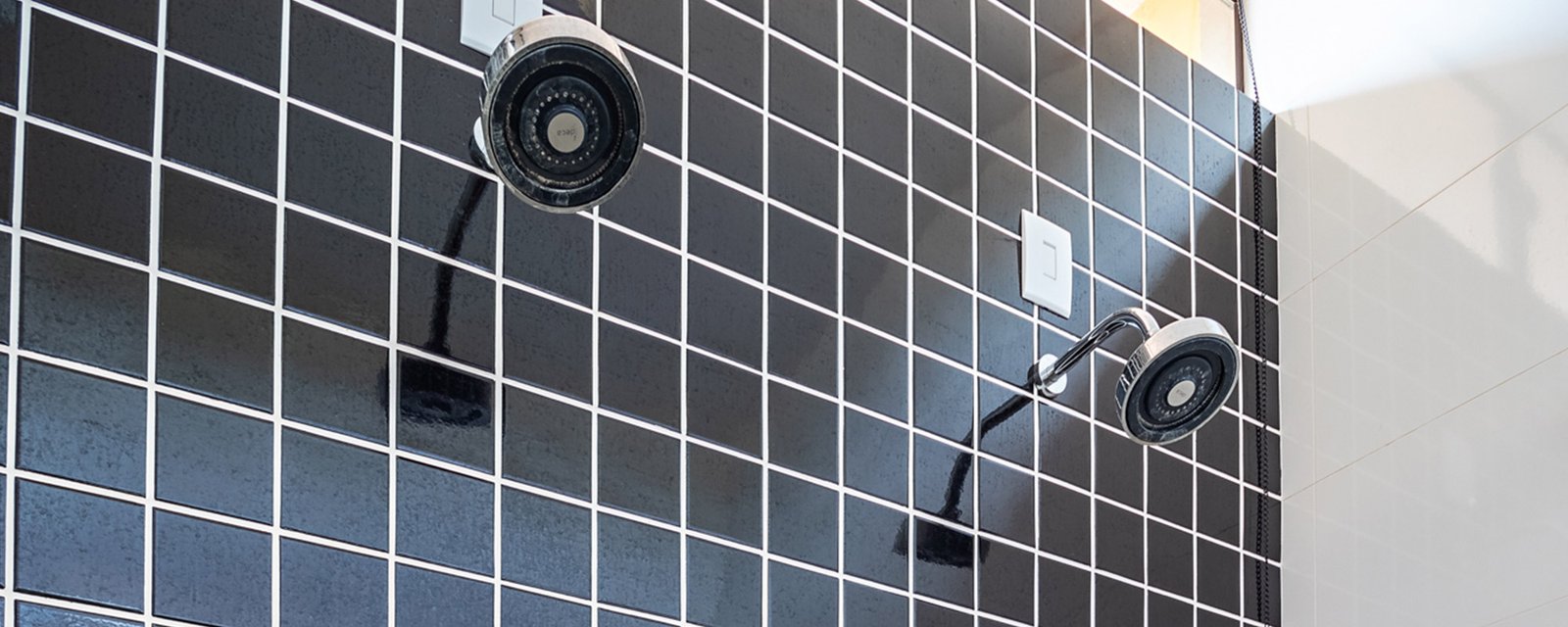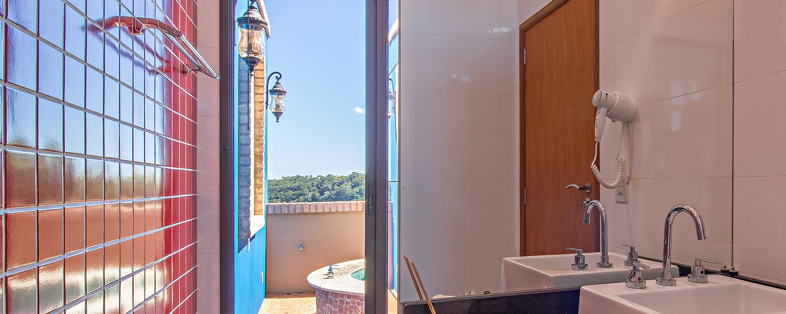 Banheiro com ducha de alta pressão com vista para o horizonte