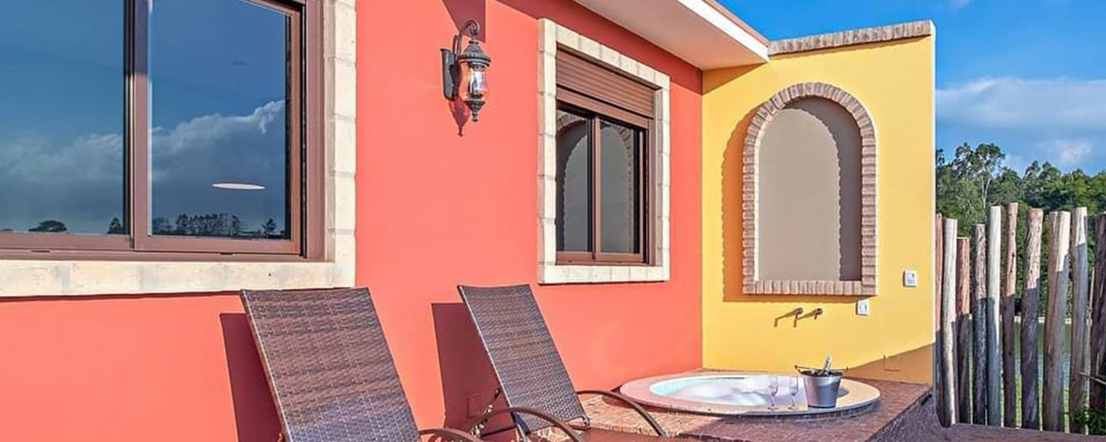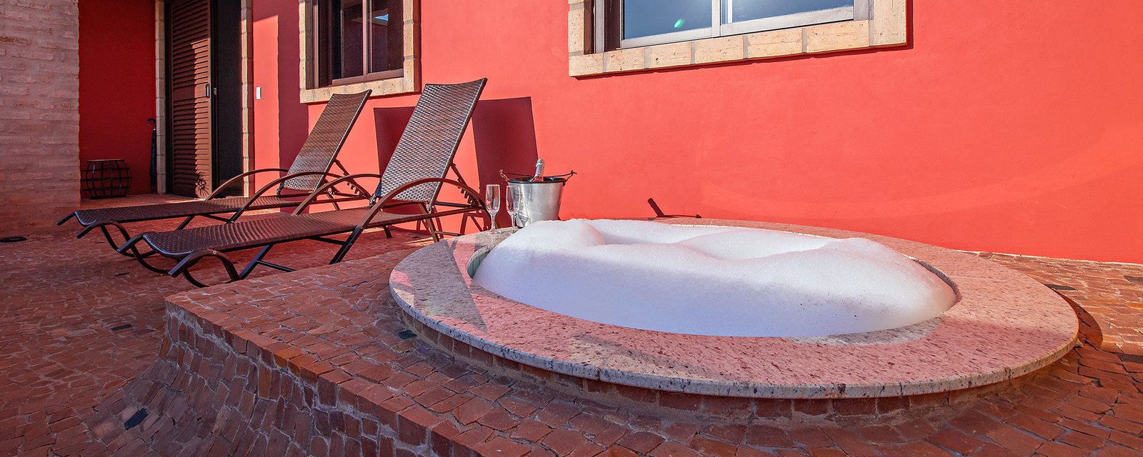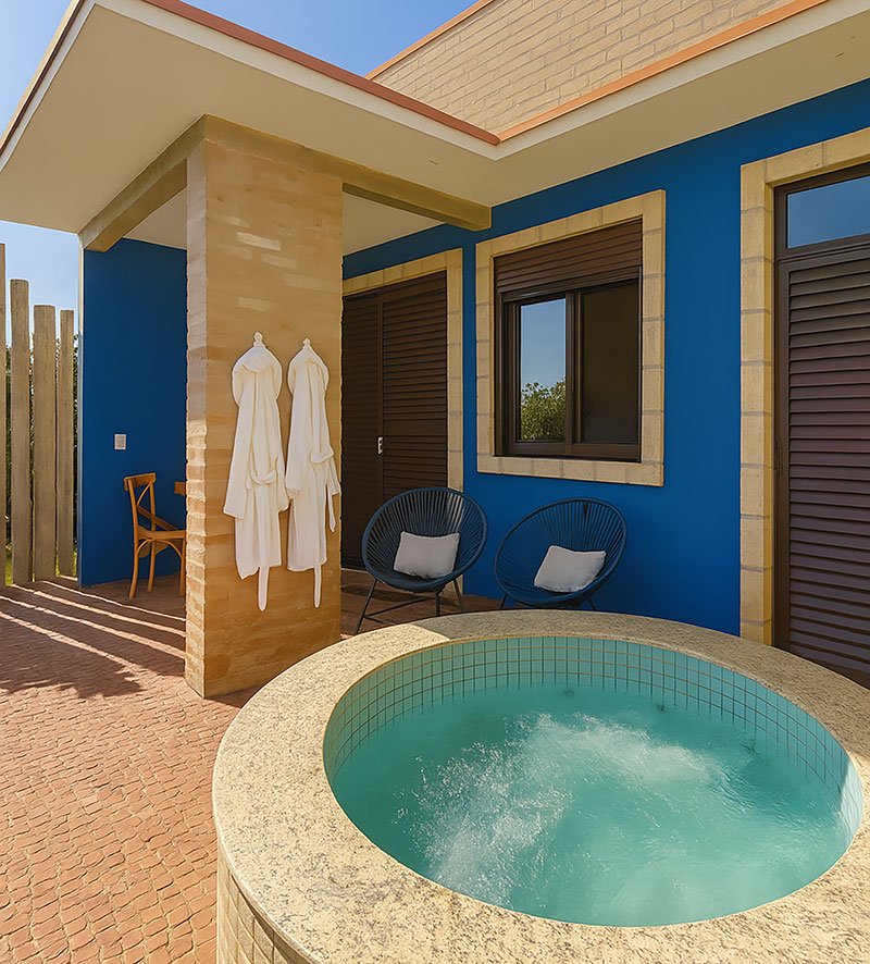 as cores do pôr do sol ou o vibrante céu estrelado, de dentro de seu ofurô aquecido.