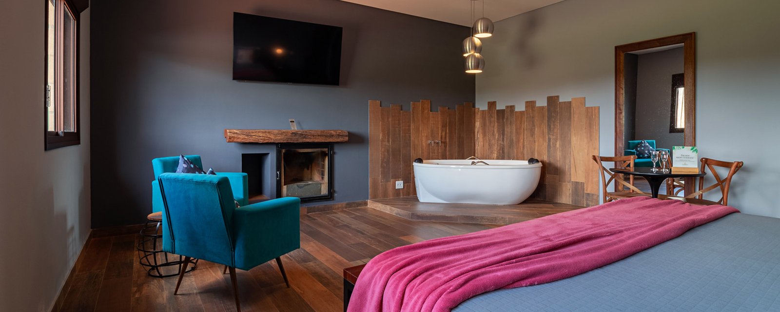 Amplo Bangalô de 60m² com dois ambientes, para uma estadia romântica e indulgente para casais.