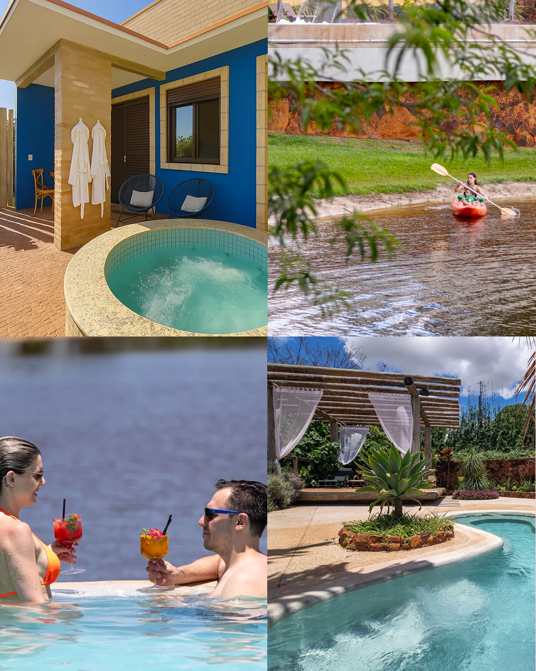 Nossos luxuosos bangalôs, junto da estrutura de um resort com charme de fazenda antiga, estão imersos em natureza exuberante, ao lado de duas lindíssimas cachoeiras, que também serão suas durante toda a estadia.